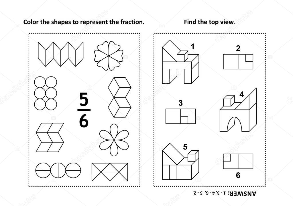 Two Visual Math Puzzles And Coloring Pages Color The Shapes To Represent The Fraction Find The Top View Black And White Answers Included from image.shutterstock.com Jan 25, 2017 · from a simple gingerbread man wearing scarf and winter hat, to a complex and elaborate butterfly. Coloring squared will try to get you a new math fact coloring page often. Give us some feedback on pages you have used and enjoyed. And click here to access sample pages from the book. Actually, these color puzzles are fun for kids of all ages. The puzzles are organized by difficulty level: Jul 08, 2015 · puzzles help us bring to life those those relationships. Or, tell us what you would like to see in one of our next books.
